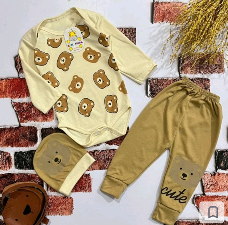 سیسمونی نوزادی بادی و شلوار طرح تدی شکلاتی