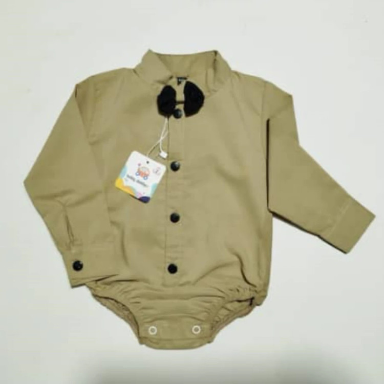 سیسمونی نوزادی پسرانه پیراهن زیردکمه مجلسی (بادی مجلسی) کرم پاپیون دار