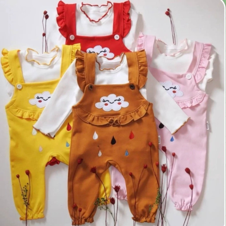 سیسمونی نوزادی دخترانه سرهمی دو تیکه طرح ابر نخ پنبه