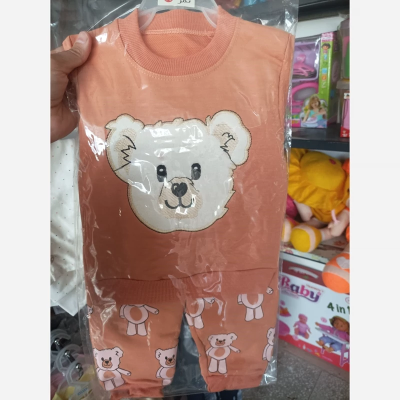 سیسمونی نوزادی بلوز و شلوار گلدوزی خرس پنبه