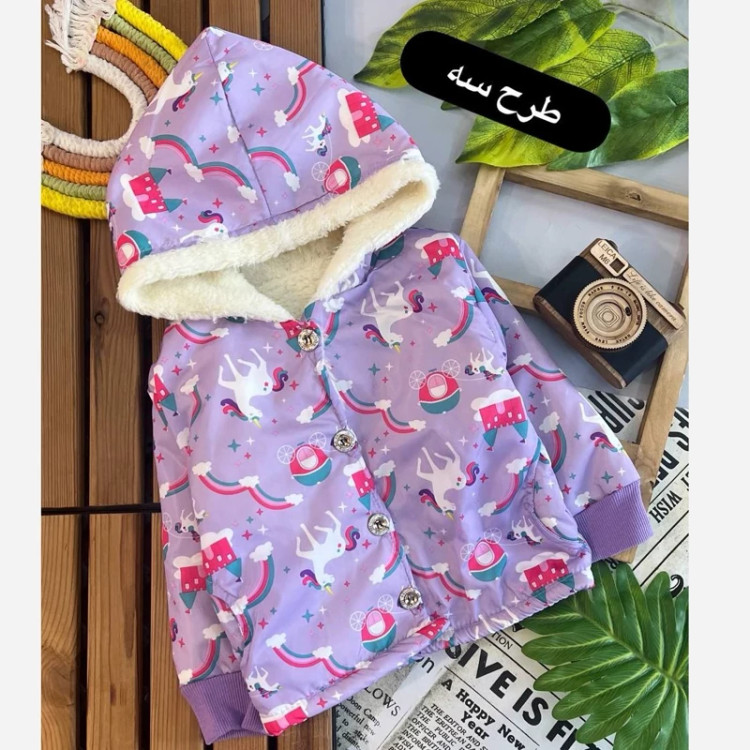 سیسمونی نوزادی کاپشن خز دار یونیکورن یاسی (لباس گرم نوزادی)