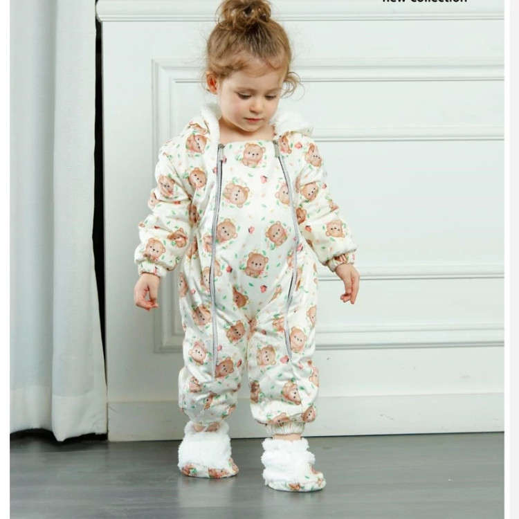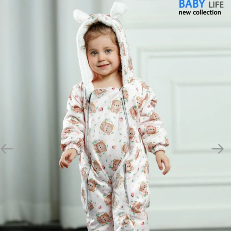 سیسمونی نوزادی دخترانه کاپشن سرهمی خرس سفید