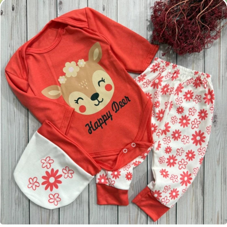 سیسمونی نوزادی دخترانه زیردکمه و شلوار و کلاه آهو صورتی