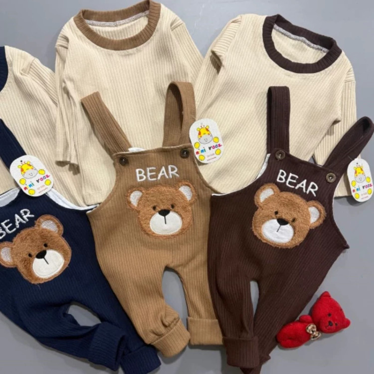 سیسمونی نوزادی پسرانه سه تیکه پیشبندی تدی