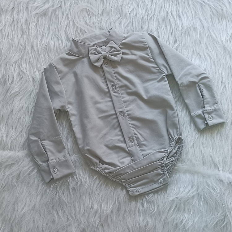 سیسمونی نوزادی پسرانه پیراهن زیردکمه مجلسی (بادی مجلسی) طوسی پاپیون دار