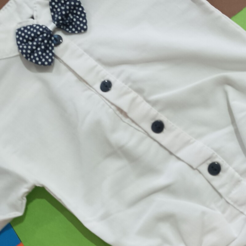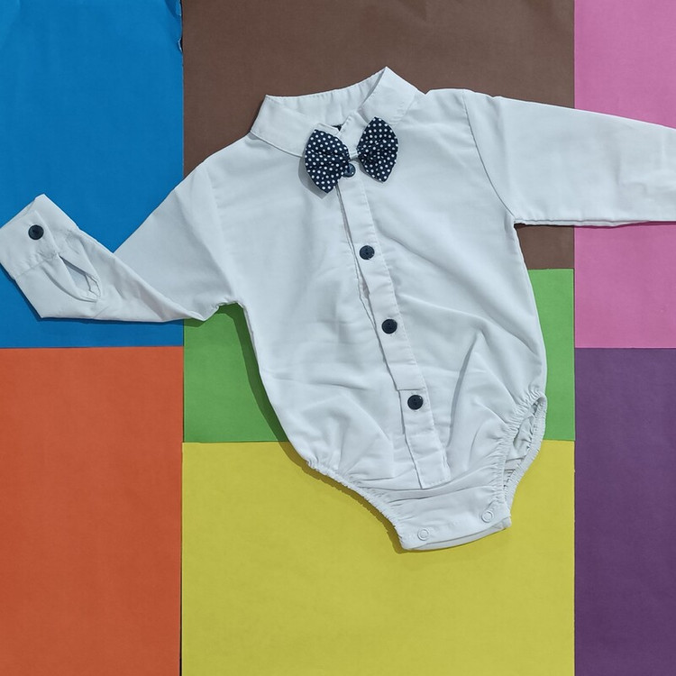 سیسمونی نوزادی پسرانه پیراهن زیردکمه مجلسی (بادی مجلسی) سفید پاپیون دار