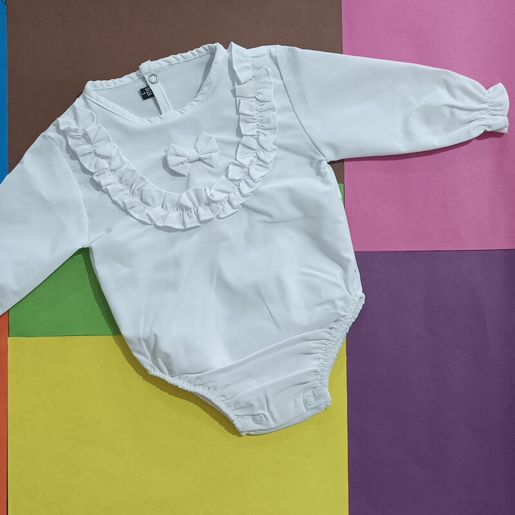 سیسمونی نوزادی دخترانه بلوز زیردکمه مجلسی (بادی مجلسی) سفید پاپیون دار