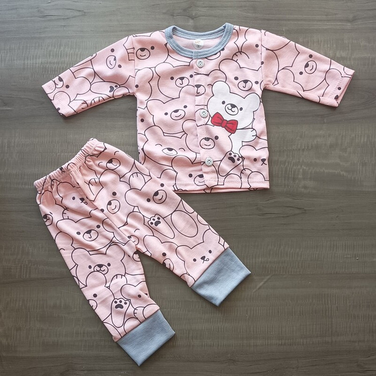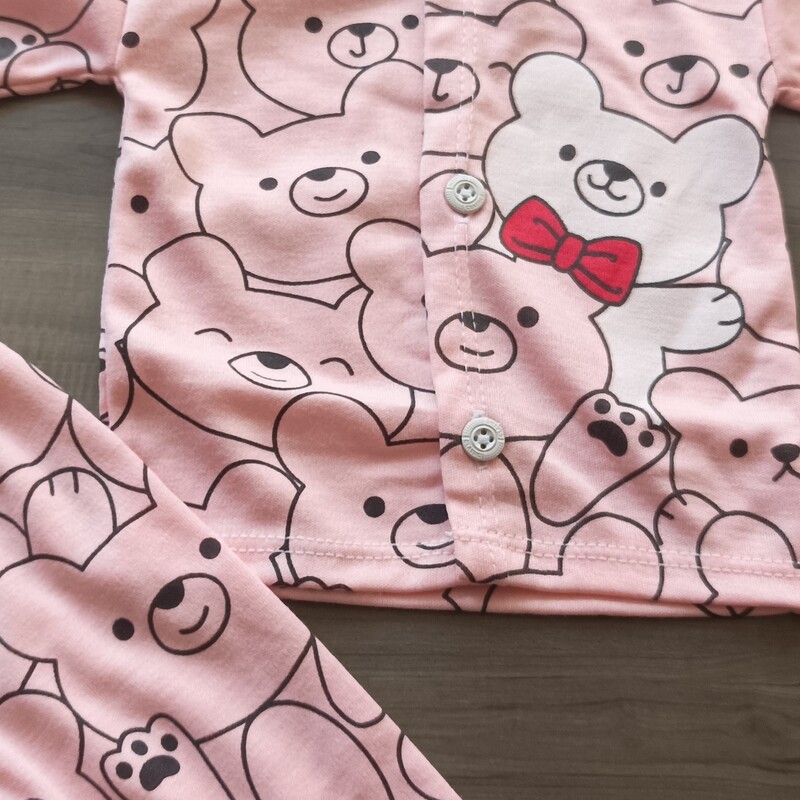 سیسمونی نوزادی دخترانه مانتویی و شلوار طرح خرسی