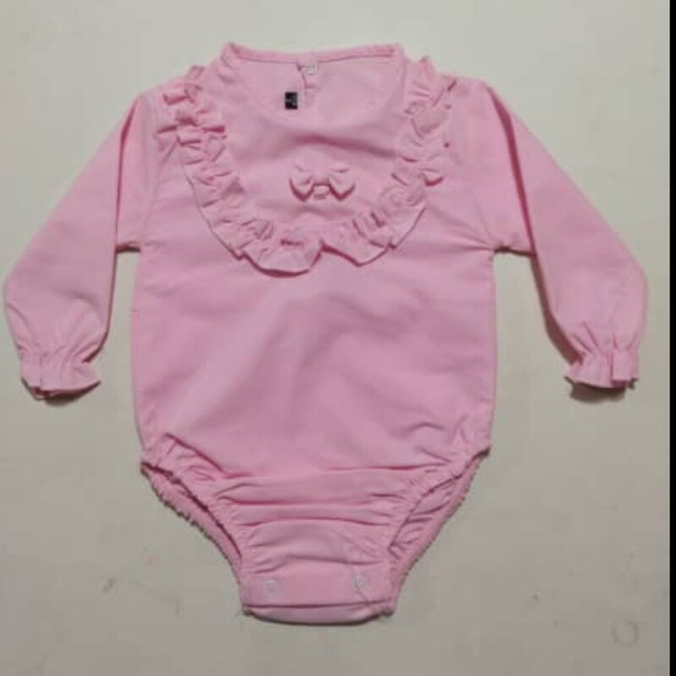 سیسمونی نوزادی دخترانه بلوز زیردکمه مجلسی (بادی مجلسی) صورتی پاپیون دار