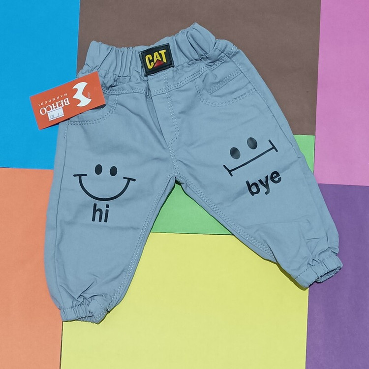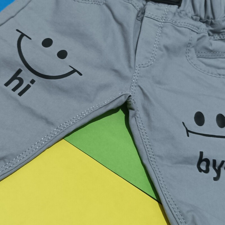 سیسمونی نوزادی اسپرت شلوار کتان طرح لبخند طوسی