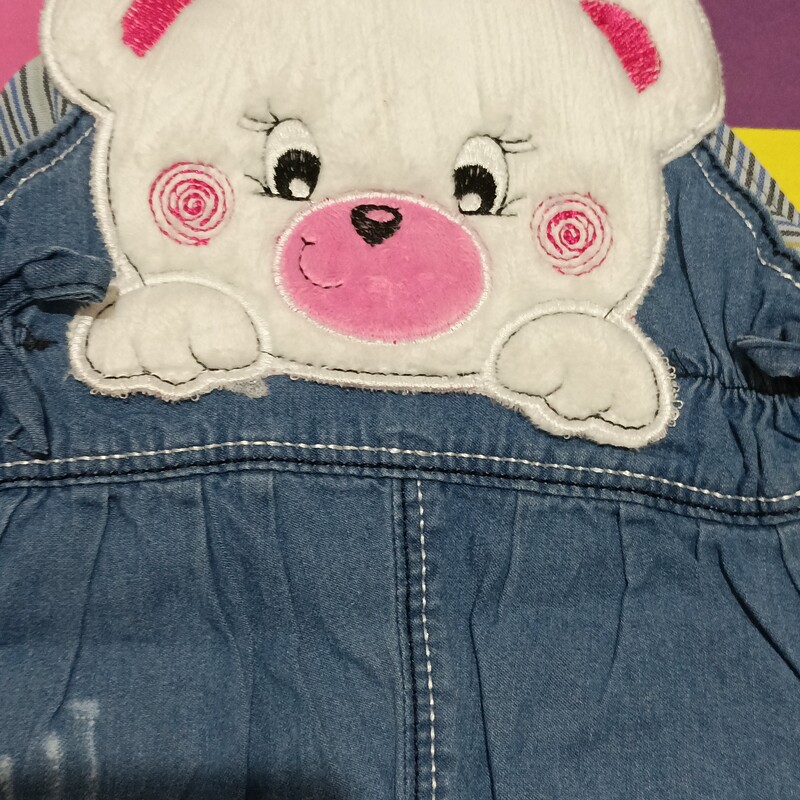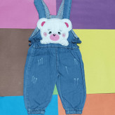 سیسمونی نوزادی دخترانه شلوار پیشبندی لی آبی خرسی