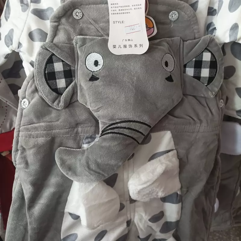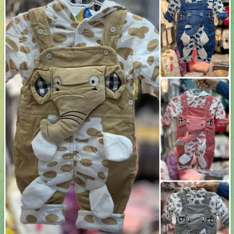 سیسمونی نوزادی کاپشن وارداتی دو تیکه پیشبندی طرح فیل